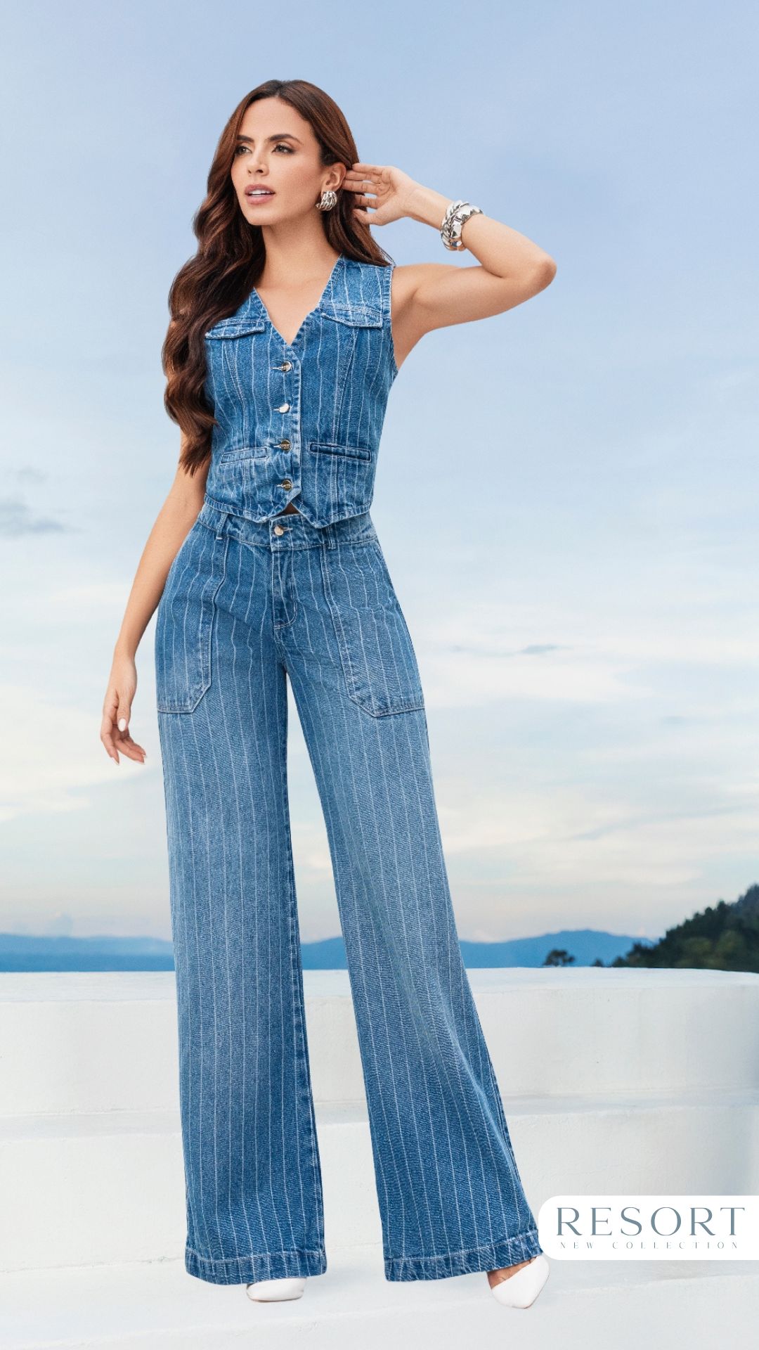El Set Cata es una propuesta moderna y poderosa que combina estructura y tendencia en un solo look. Incluye jean tiro alto con 1 botón y estampación láser, acompañado de chaleco a juego para un outfit coordinado y sofisticado.